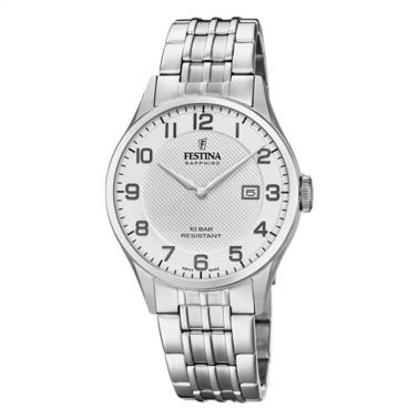 Con caja de acero y cristal zafiro, equipado con correa de acero.